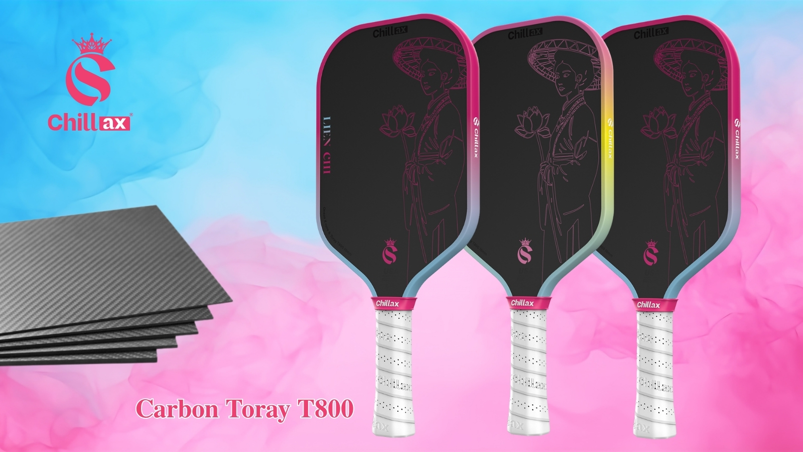 Điều làm nên sức mạnh vượt trội của Chillax Sport chính là việc sử dụng sợi Carbon Toray T800 cao cấp cho bề mặt vợt. Với lớp carbon Toray T800, Chillax Sport mang đến: