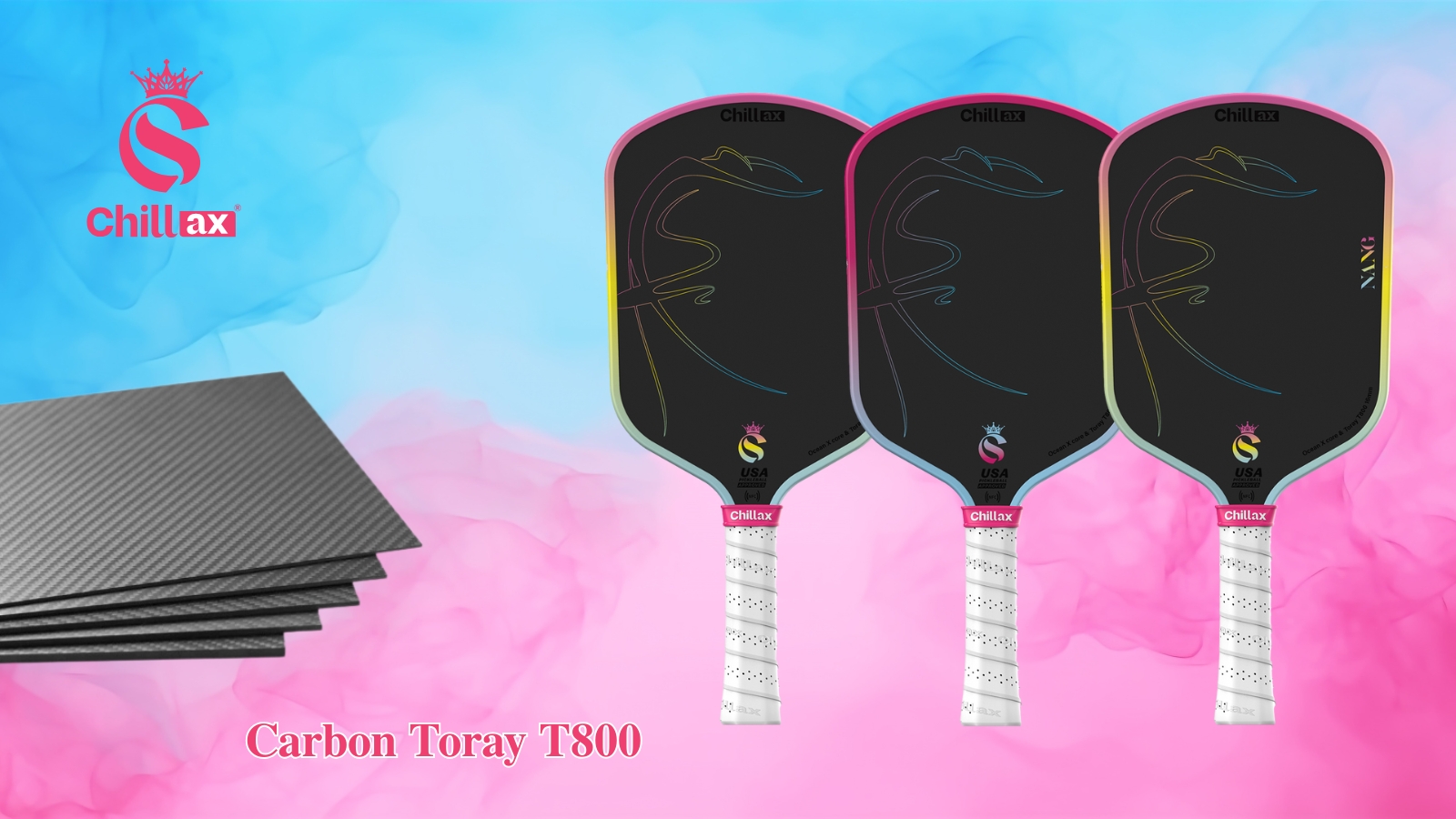 Điều làm nên sức mạnh vượt trội của Chillax Sport chính là việc sử dụng sợi Carbon Toray T800 cao cấp cho bề mặt vợt. Với lớp carbon Toray T800, Chillax Sport mang đến: