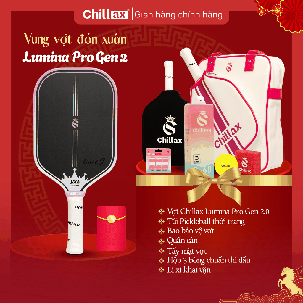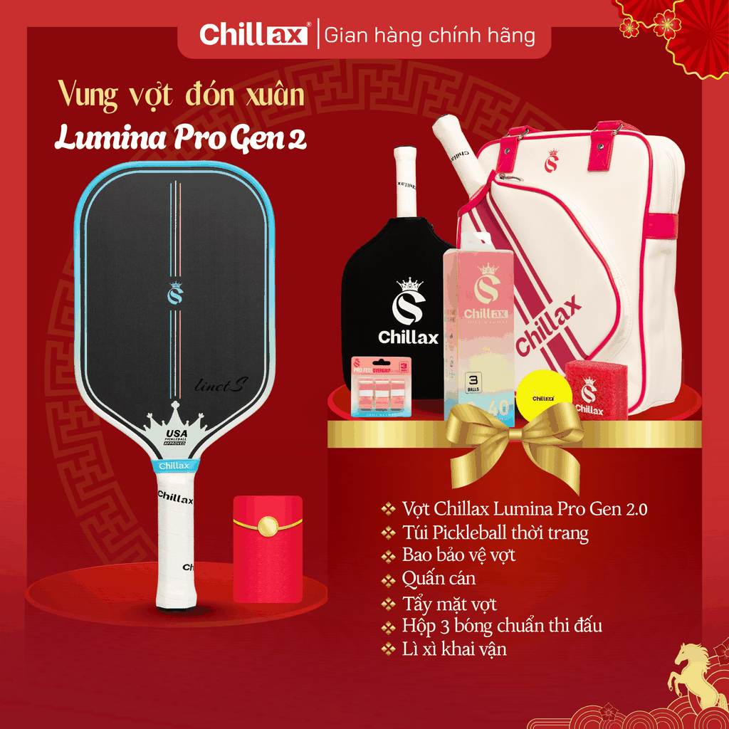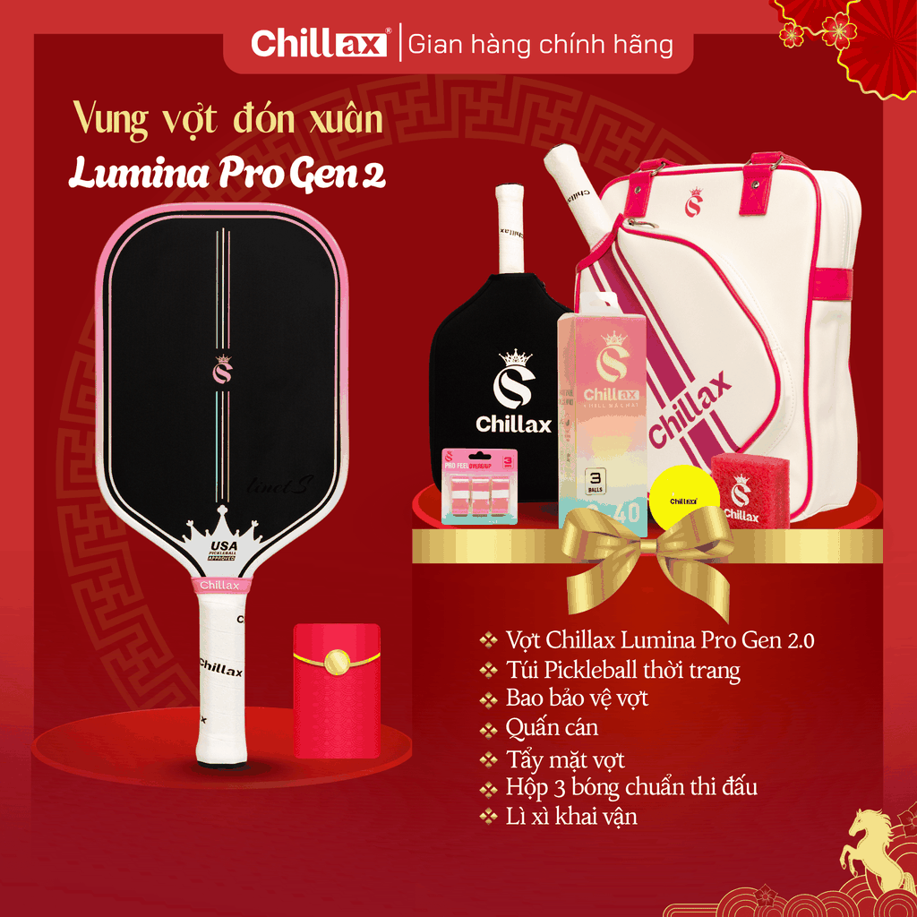 Combo Tết Vui Khỏe Hết Ý – Vợt Pickleball Chillax Lumina (Full Phụ Kiện)